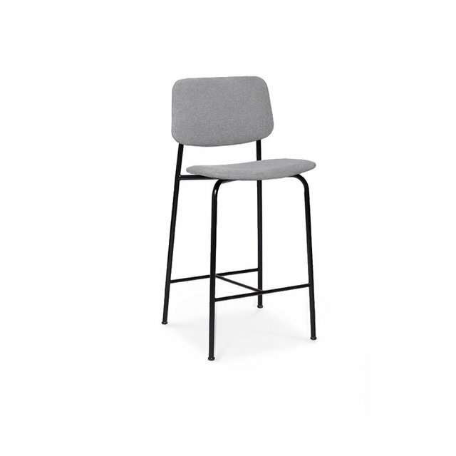 - Banqueta con asiento tapizado y respaldo multilaminado con terminación enchapado en madera natural en ambas caras. Estructura en caño de hierro pintado a horno.