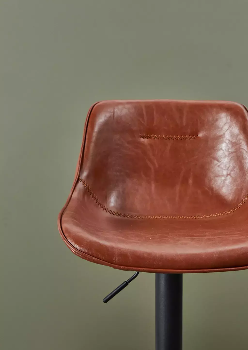 Banqueta con altura regulable y asiento de ecocuero con detalles de costura. Disponible en tres variantes de color: negro, marrón o suela.