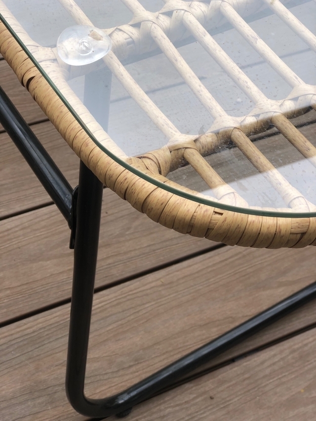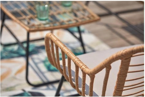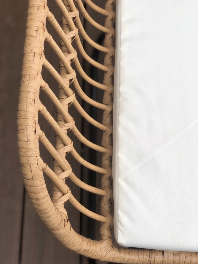 - Tramado de rattán sintético, apto para exterior, resistente al agua y al sol porque su tejido posee protección UV.